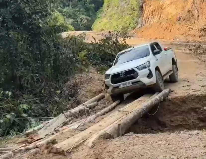 Namun, kondisi ini jauh dari kata aman. Selain rawan ambruk, jembatan darurat tersebut hanya bisa dilalui dengan sangat hati-hati, terutama oleh kendaraan roda empat.