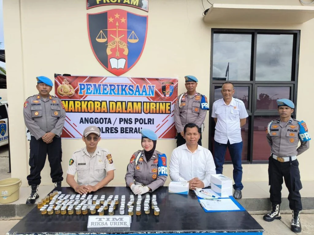 BERAU TERKINI – Sebagai langkah nyata mengantisipasi penyalahgunaan narkotika sekaligus menjaga integritas serta profesionalisme anggotanya, seluruh personel Polres Berau menjalani tes urine, Senin (23/2/2026).
