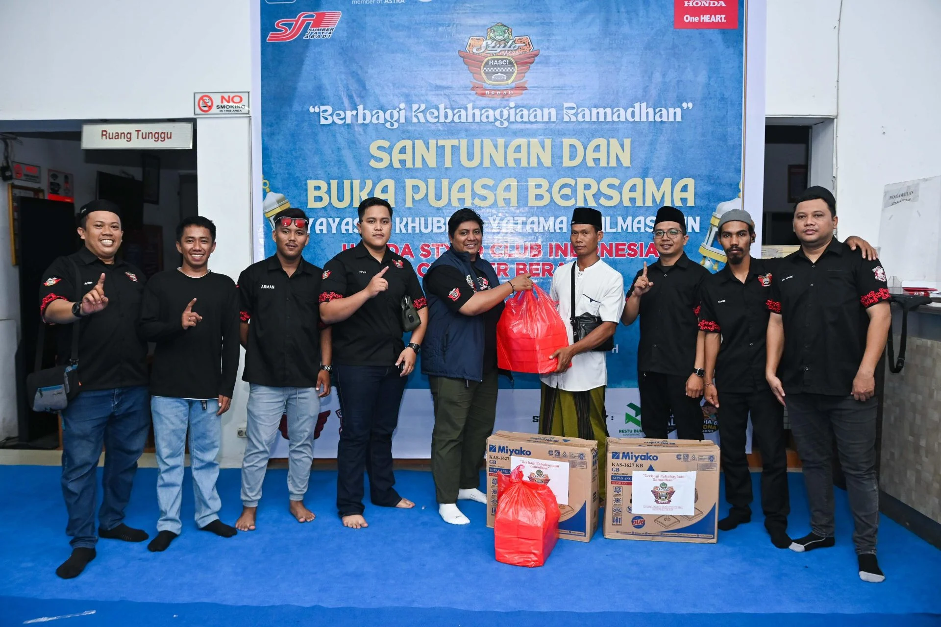 Setelah kegiatan rolling city, para peserta berkumpul di Dealer Honda Sumber Jaya Abadi untuk melaksanakan buka puasa bersama, kemudian dilanjutkan dengan sholat berjamaah serta penyerahan santunan kepada anak yatim. Suasana hangat dan penuh kebersamaan terlihat saat para anggota komunitas bersama anak-anak yatim menikmati rangkaian kegiatan tersebut.