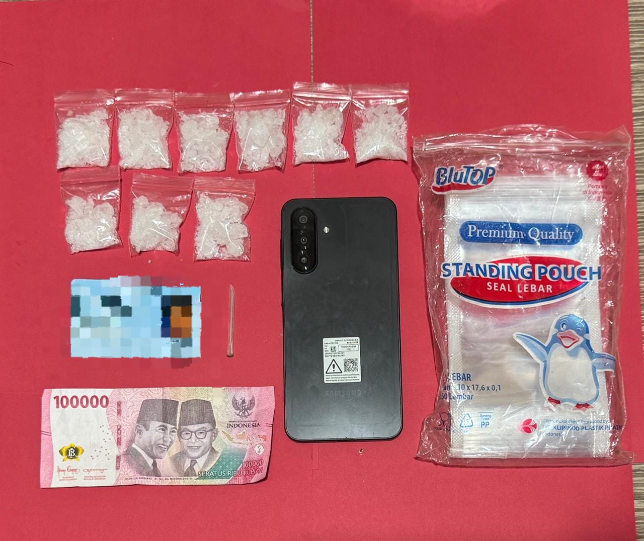Selain sabu, sejumlah barang bukti lain turut diamankan, di antaranya alat hisap, plastik kemasan, sepeda motor, uang tunai, serta telepon genggam yang diduga berkaitan dengan aktivitas peredaran narkotika.