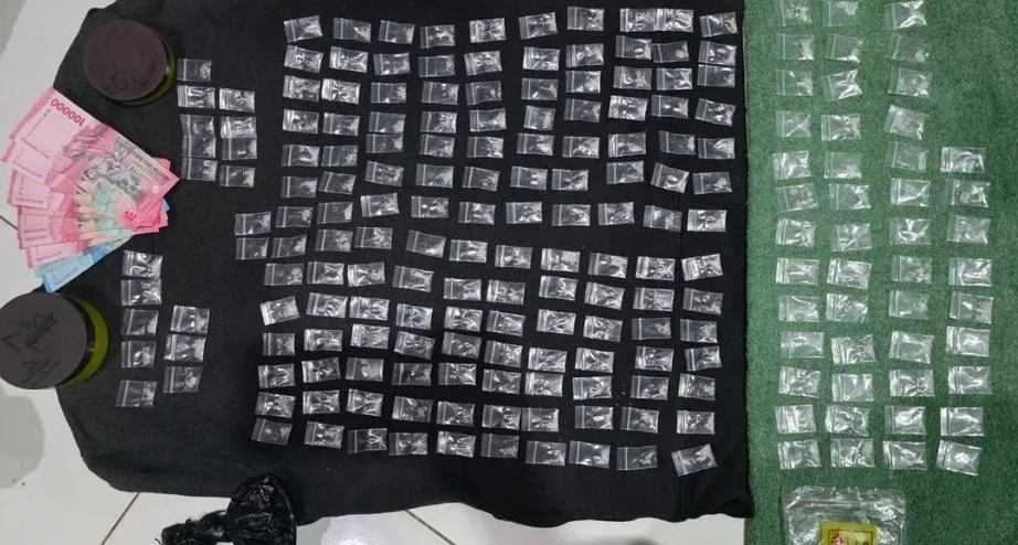 Polisi mengamankan terduga bandar berinisial IY yang membawa sebanyak 207 poket sabu yang dibungkus pakai plastik warna hitam.