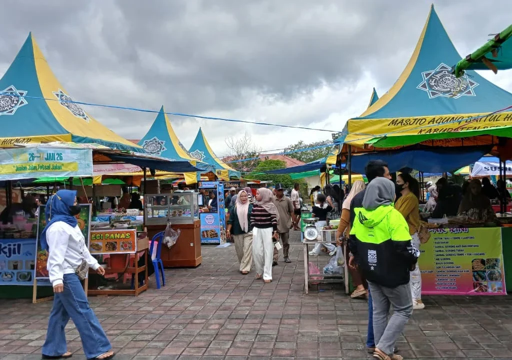 Kondisi di lapangan tampak mulai berdesakan oleh warga yang antusias berburu takjil.