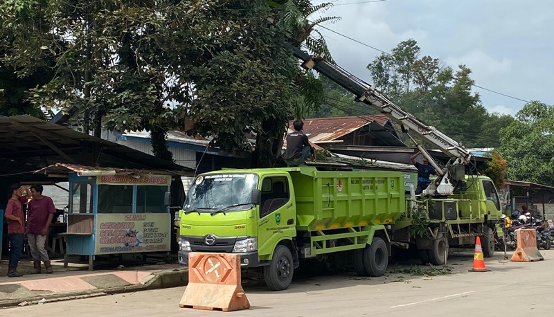 TANJUNG REDEB – Demi pelayanan maksimal kepada masyarakat, Dinas Lingkungan Hidup dan Kebersihan (DLHK) Kabupaten Berau bersama Unit Pelaksana Teknis (UPT) Pertamanan dan PLN melakukan pemangkasan pohon dan daunnya diolah menjadi kompos.