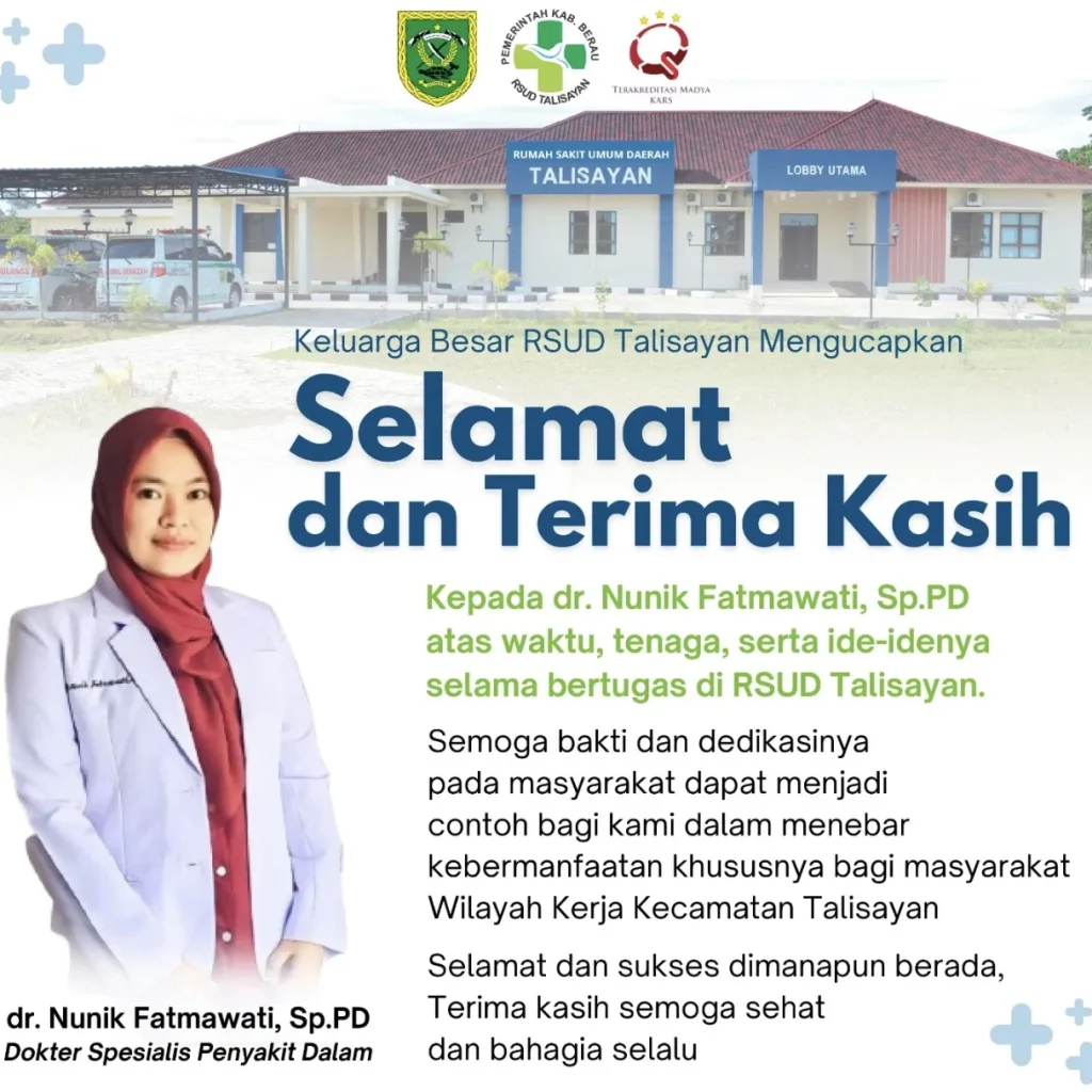 Dokter spesialis tersebut diketahui telah mengabdi di RSUD Talisayan selama lebih dari satu tahun.