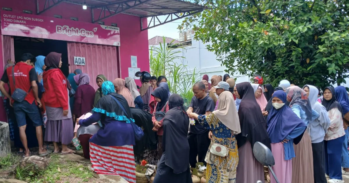 Antrean warga yang hendak membeli elpiji 3 kg terlihat di Pangkalan Dinara Jalan Al-Bina, Gunung Panjang pada Kamis (12/3) lalu.