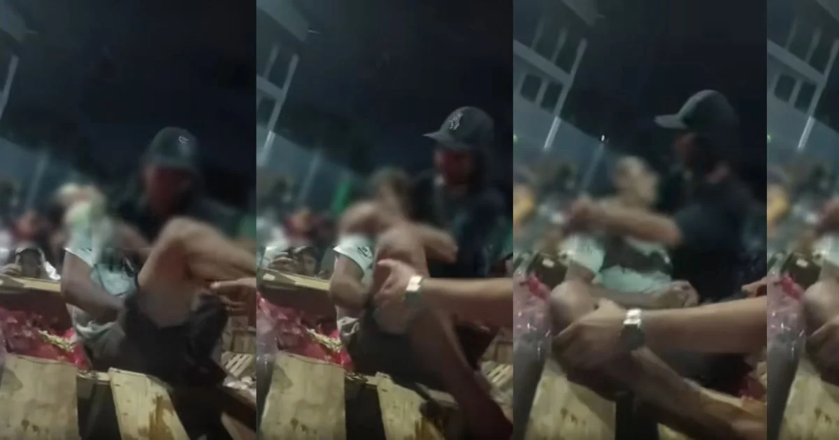 Video itu menunjukkan pria yang telah terkulai lemas tak berdaya dengan baju putih dan celana pendek berklir hitam.
