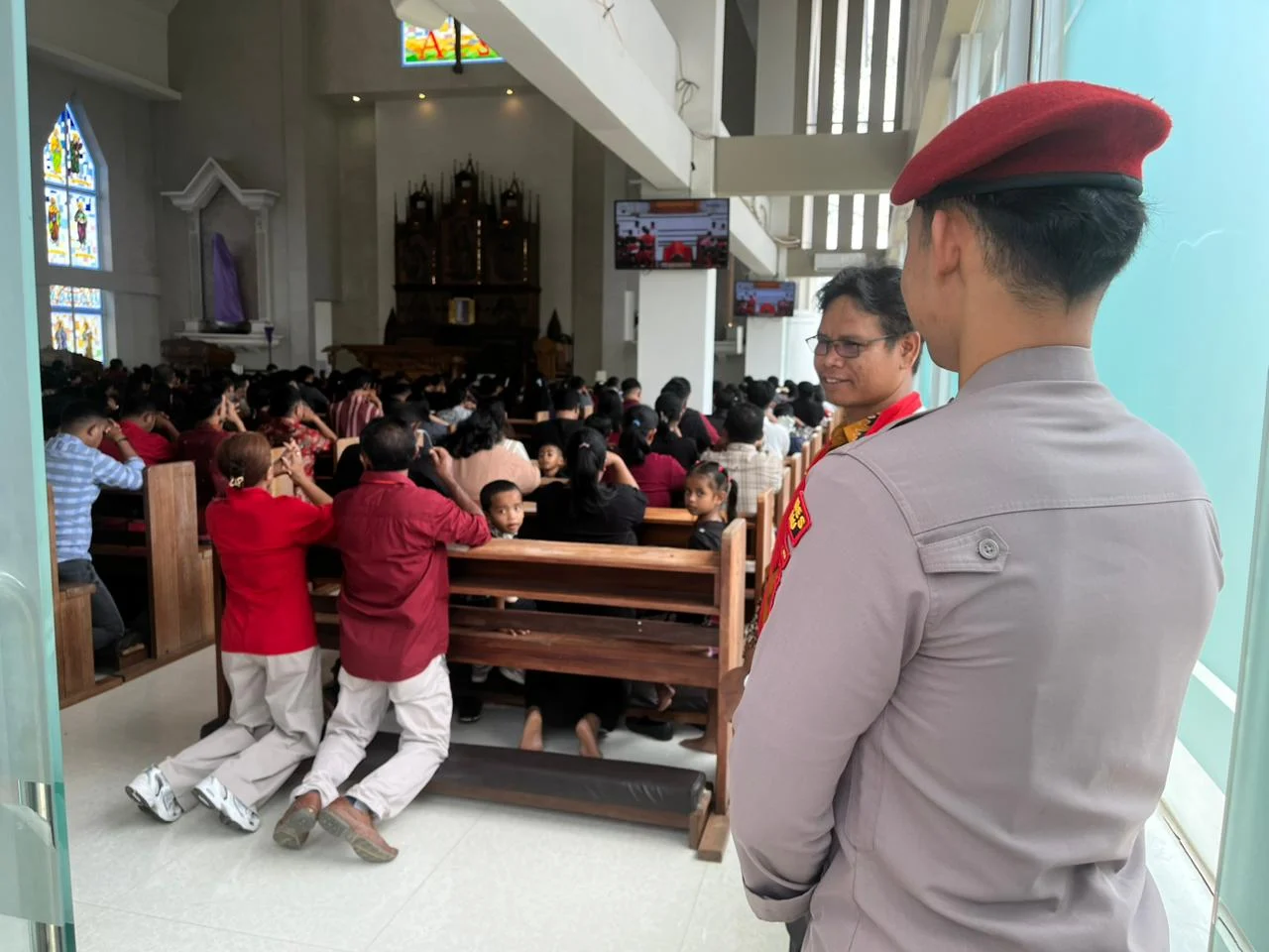 Selain itu, koordinasi dengan pihak pengurus gereja juga dilakukan guna menjaga situasi tetap kondusif selama rangkaian ibadah berlangsung.