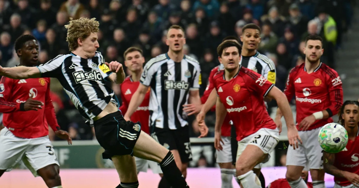 Di penghujung babak pertama Anthony Gordon berhasil melesatkan bola ke gawang Senne Lammens. The Magpies unggul 1-0 atas Setan Merah.
