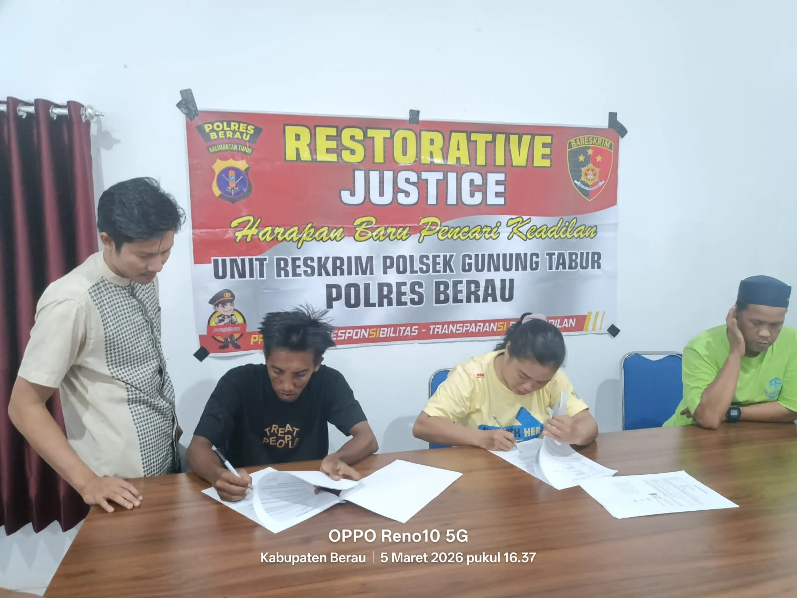 Kapolsek Gunung Tabur, Iptu Putu Ari melalui Kanit Reskrim, Iptu Uyu Sukamara Permana, menjelaskan, keputusan penyelesaian melalui RJ diambil setelah kedua belah pihak berdialog dan sepakat berdamai.