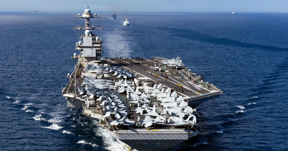Di mana setidaknya ada 1 kapal induk dan 4 kapal jenis destroyer bersiaga di Laut Arabia.