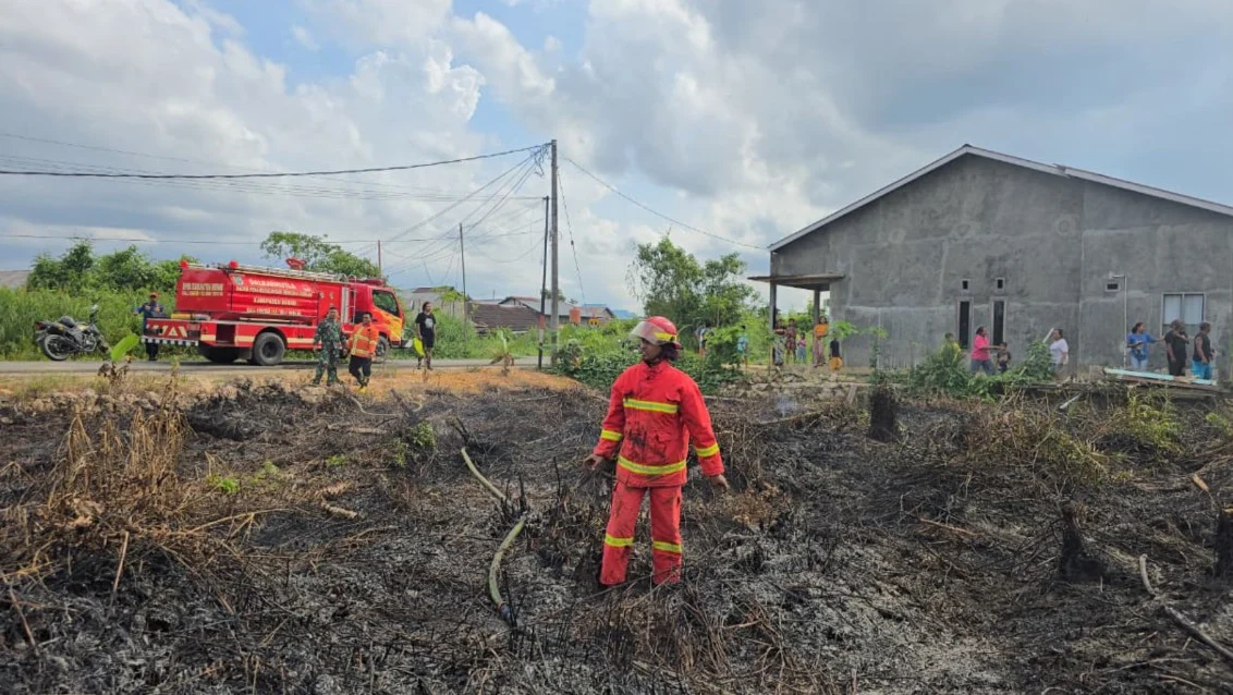 Kebakaran menghanguskan lahan yang diperkirakan seluas kurang lebih 1 hektar.