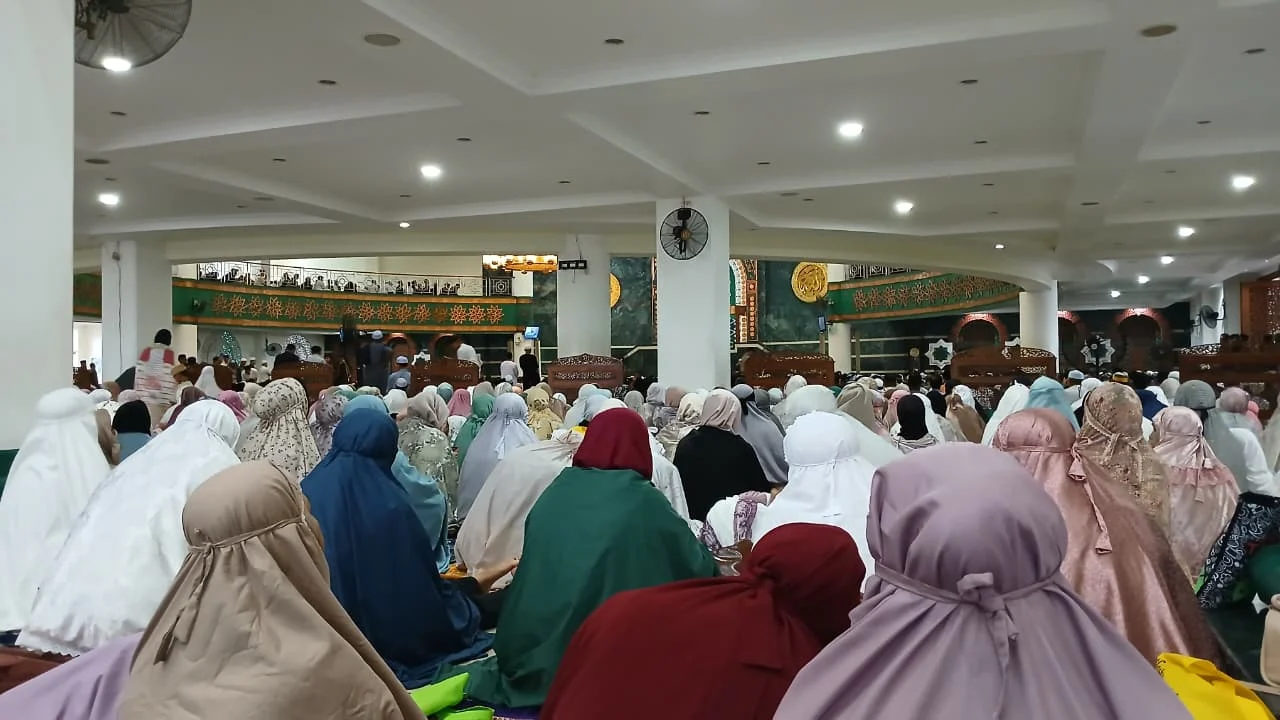 Pemandangan di pelataran hingga ruang utama masjid tampak begitu semarak.