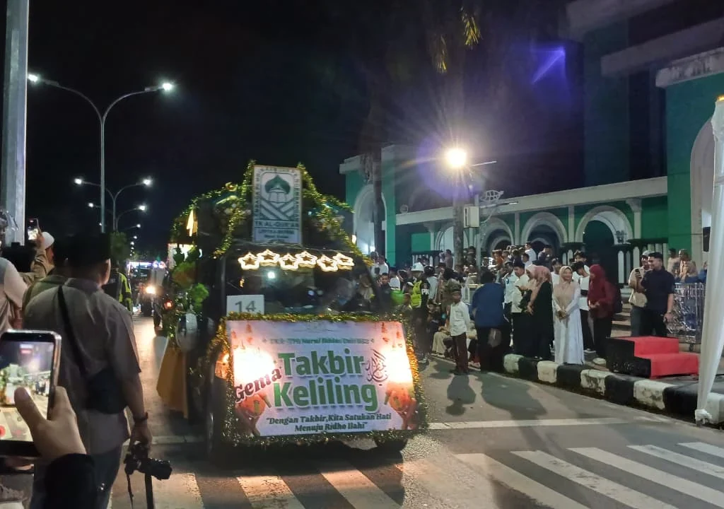Kegiatan pawai takbir keliling yang menjadi tradisi tahunan ini terlaksana dengan sangat lancar, menghidupkan semangat kemenangan di sepanjang jalan protokol pusat kota.