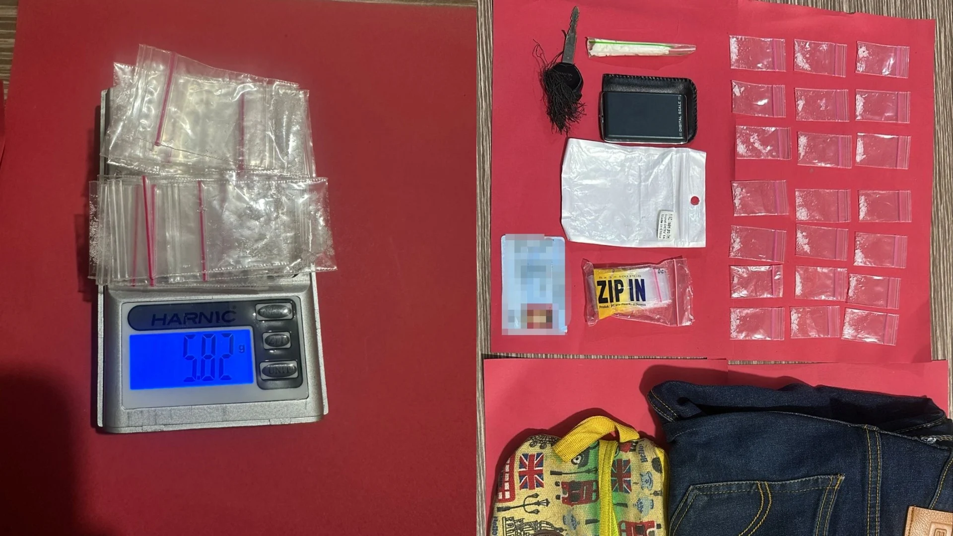 Dalam proses penggeledahan yang disaksikan oleh warga setempat, petugas menemukan sejumlah barang bukti narkotika dan perlengkapan pendukung lainnya.