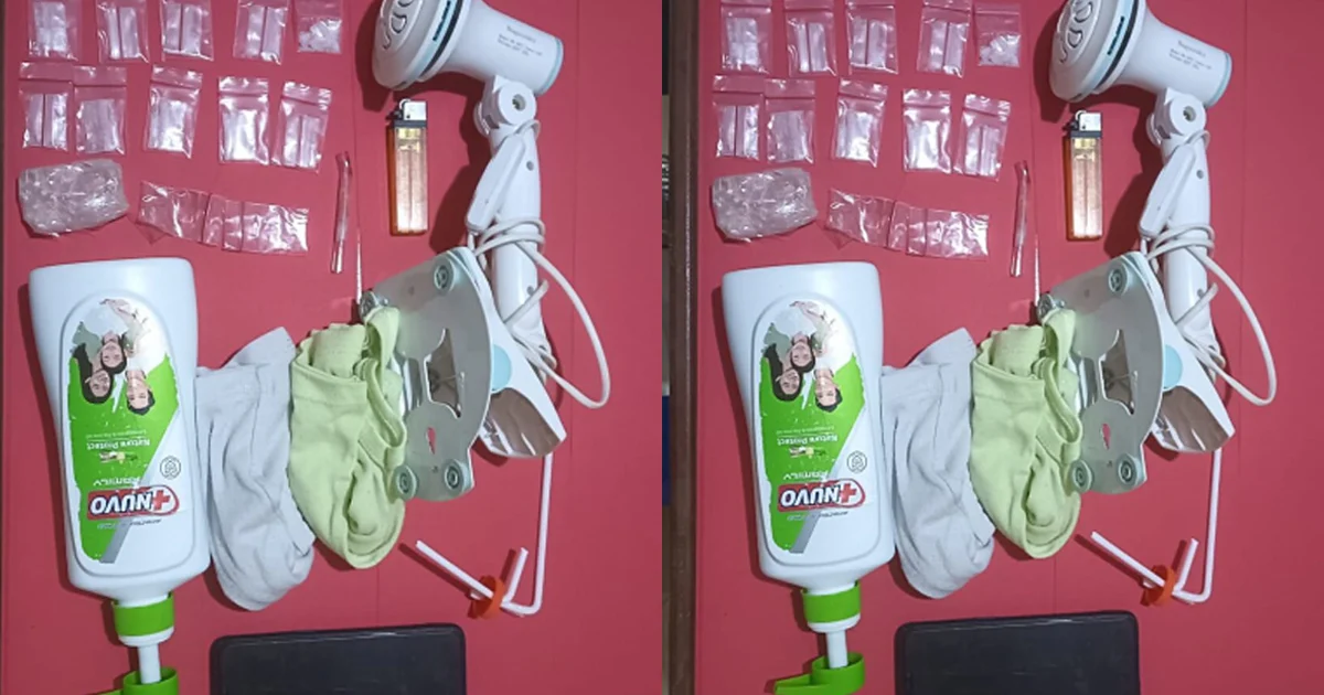 Sebagian sabu disimpan di dalam botol sabun cair, yang dibungkus pakaian anak-anak. Sementara sisanya diselipkan di dalam kipas angin jepit.