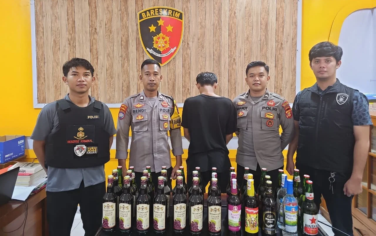 Dari tangan pelaku, polisi menyita sebanyak 36 botol minuman keras berbagai jenis dan merek.