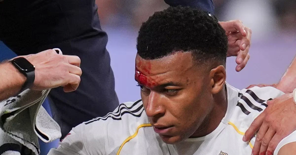 Kylian Mbappe mendapatkan tiga jahitan di bagian pelipisnya, persis di atas alisnya.