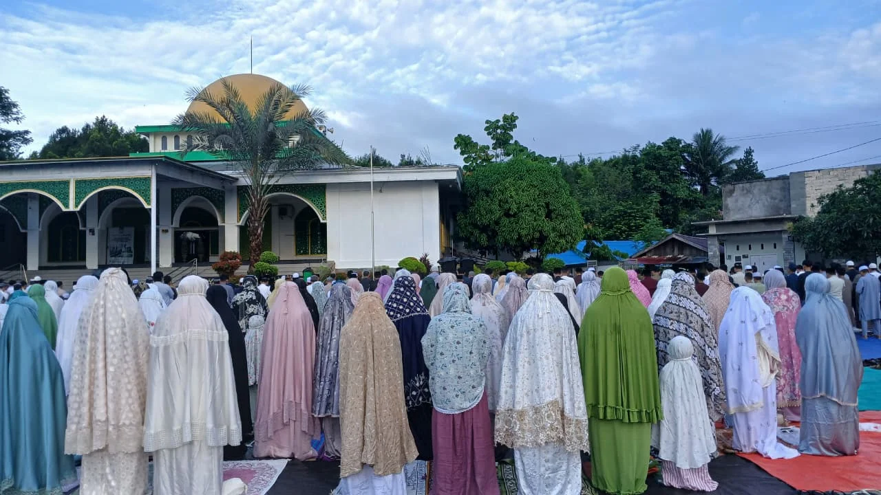 Dalam suasana yang suci, para jemaah tampak mengenakan pakaian terbaik mereka, bersiap untuk saling memaafkan usai sebulan penuh menjalankan ibadah puasa.