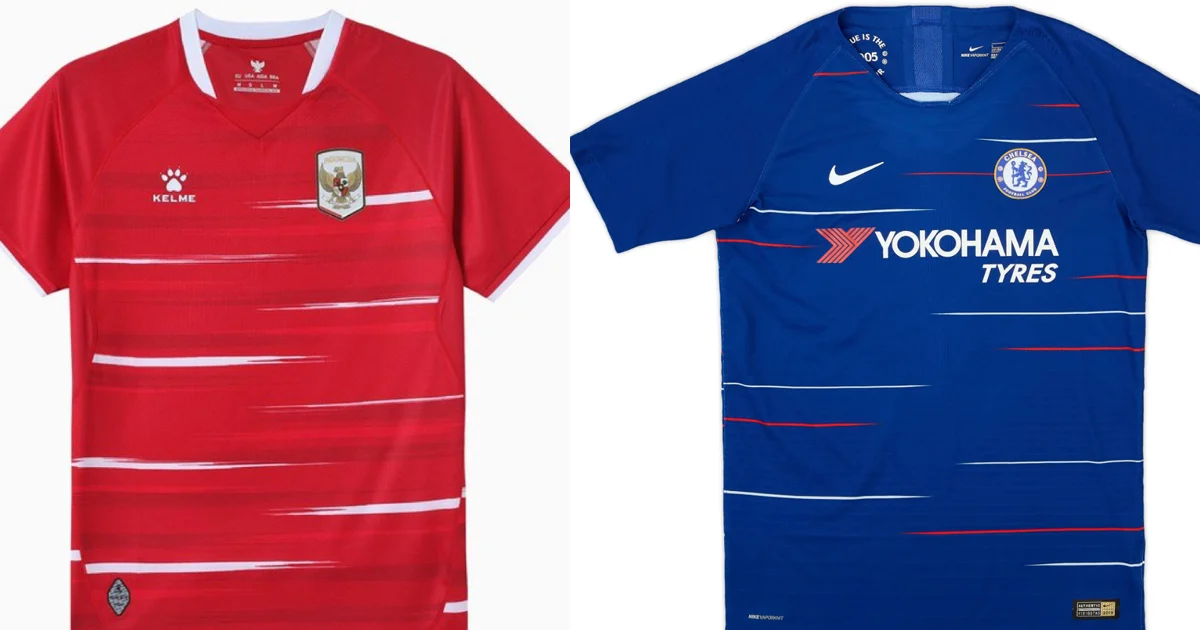Salah satu warganet menyebutkan desain jersey Timnas Indonesia khususnya jersey home mirip seperti jersey home Chelsea di musim 2019/2020.