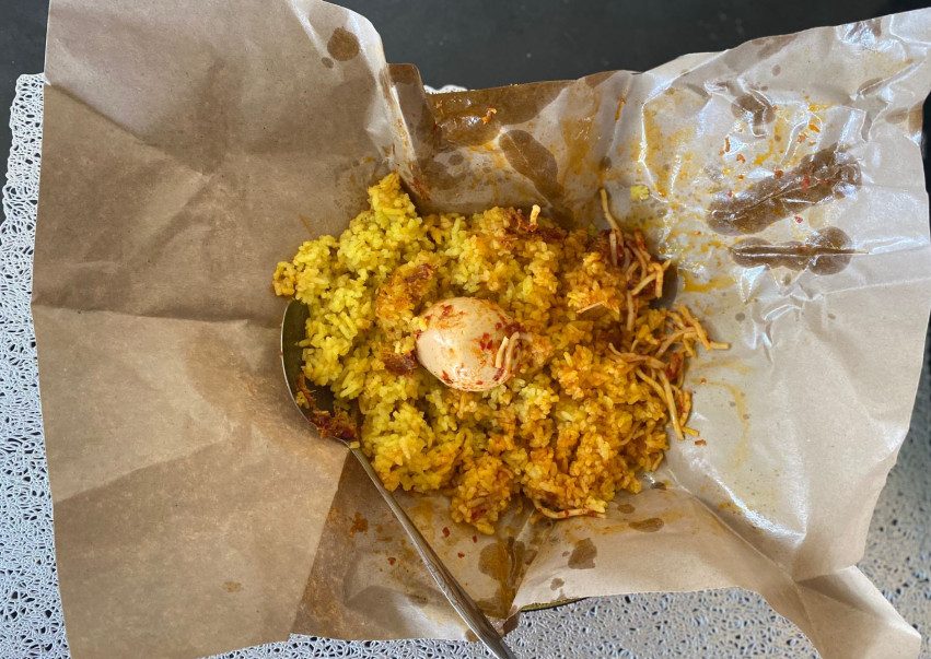 Menu andalannya tentu saja nasi kuning dengan rasa gurih dan aroma rempah yang menggoda. Lauk pendampingnya pun cukup beragam mulai dari telur, ayam, daging, hingga ikan.