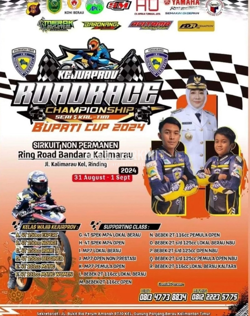 TANJUNG REDEB – Pemerintah Kabupaten (Pemkab) Berau bakal menggelar Roadrace Bupati Cup 2024 Kejuaraan Provinsi (Kejurprov) Kalimantan Timur (Kaltim) Seri 5 pada 31 Agustus sampai 1 September 2024 mendatang.