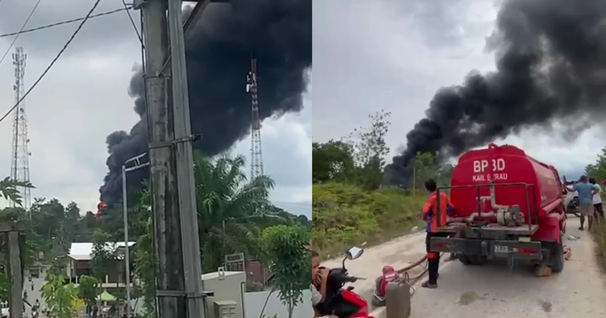Asap hitam pekat membumbung tinggi disertai suara ledakan yang diduga berasal dari tabung gas.