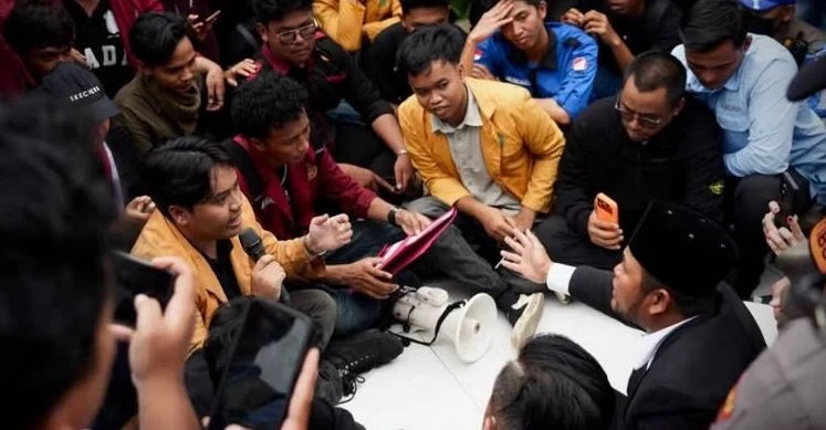 Dia pun menyatakan komitmen untuk memenuhi semua tuntutan mahasiswa.