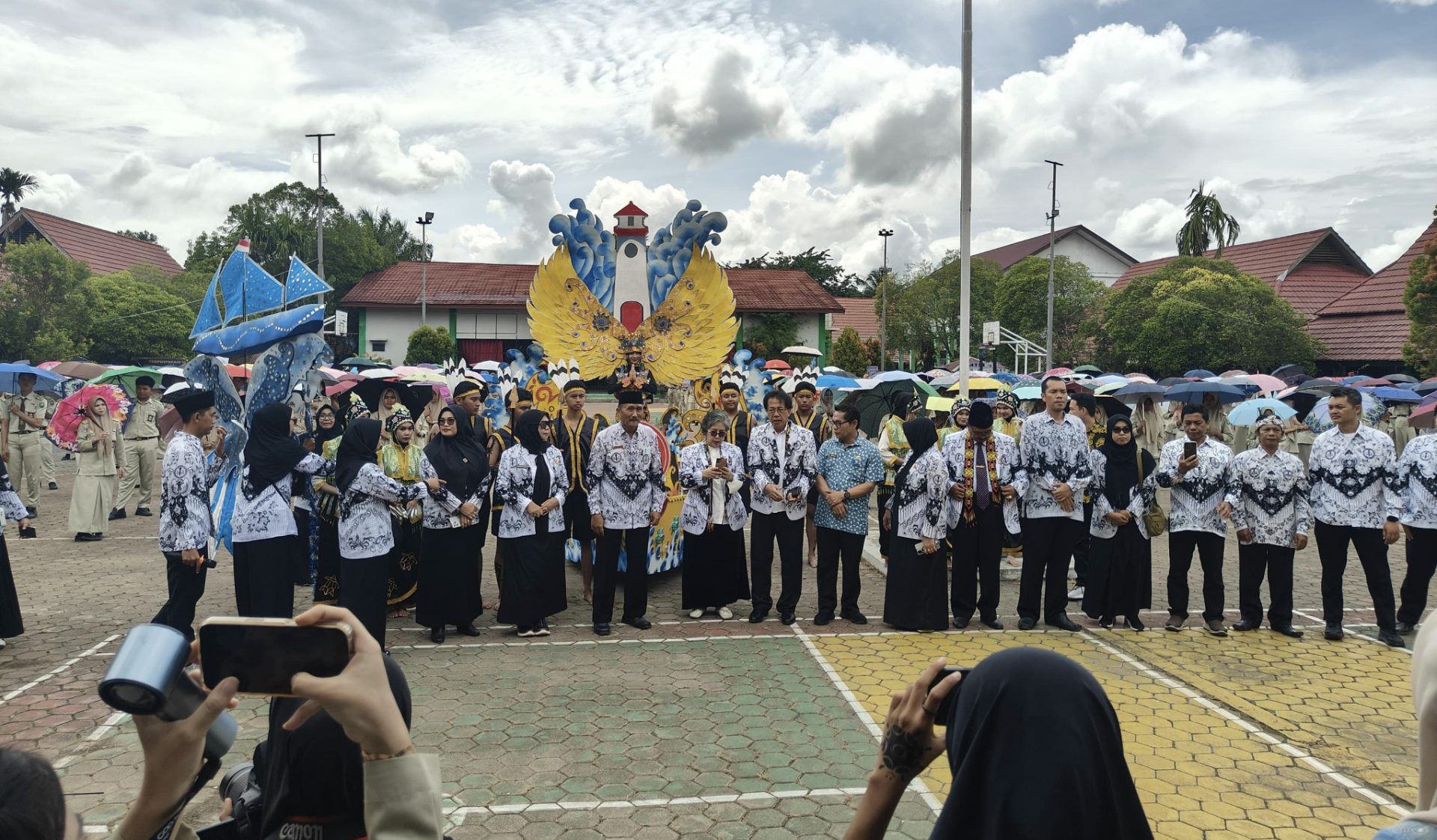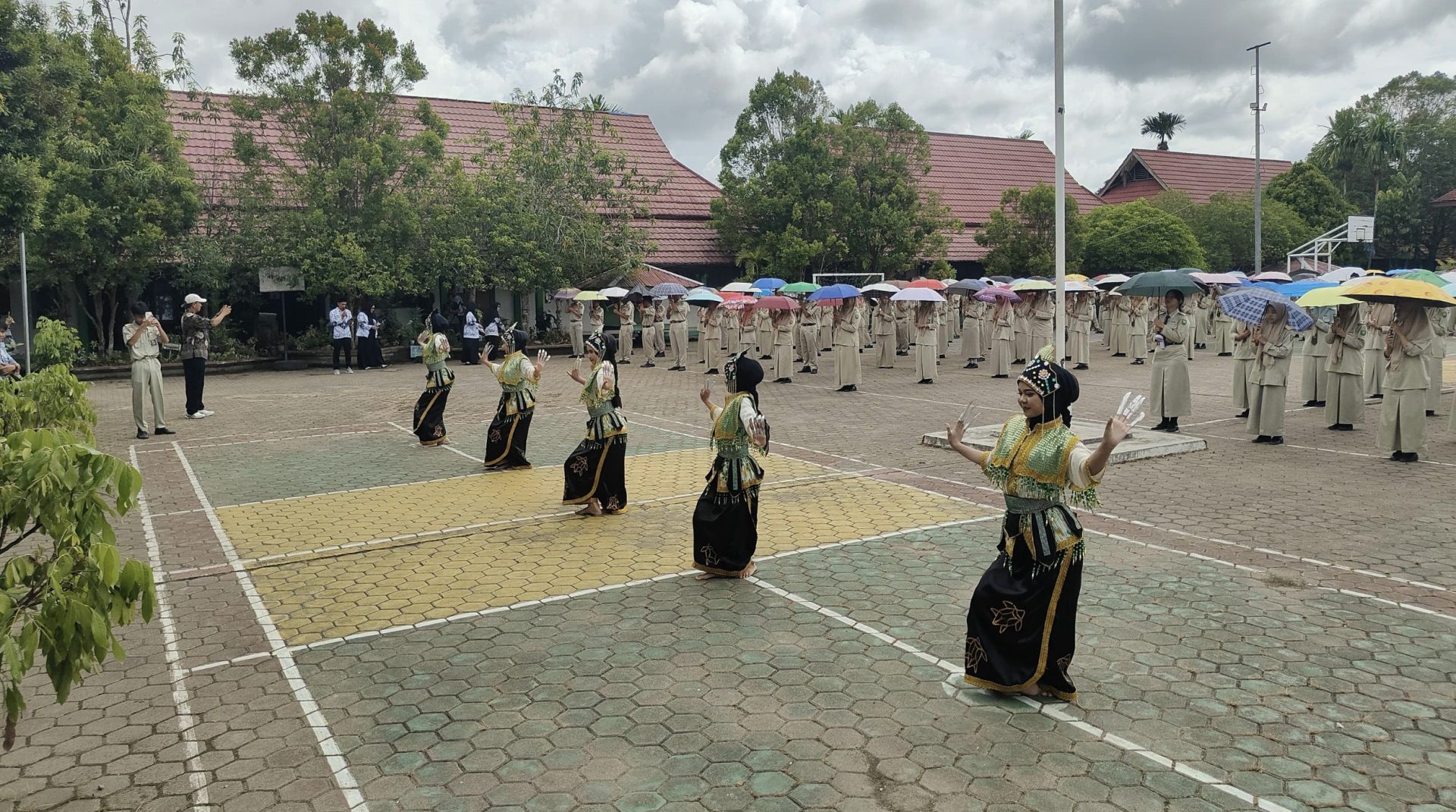 Penyambutan berlangsung meriah dan tertata. Mulai dari barisan penyambutan hingga penampilan siswa, seluruh rangkaian acara memperlihatkan kekompakan warga sekolah.