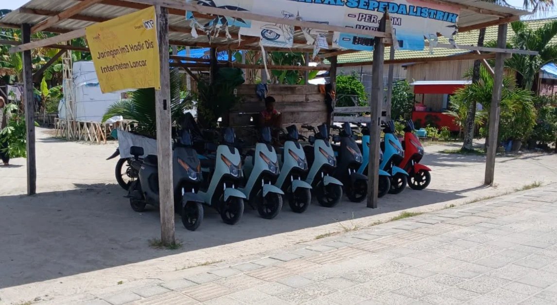 BERAU TERKINI – Begini suka duka pelaku usaha penyewaan sepeda listrik di Pulau Derawan, Berau.