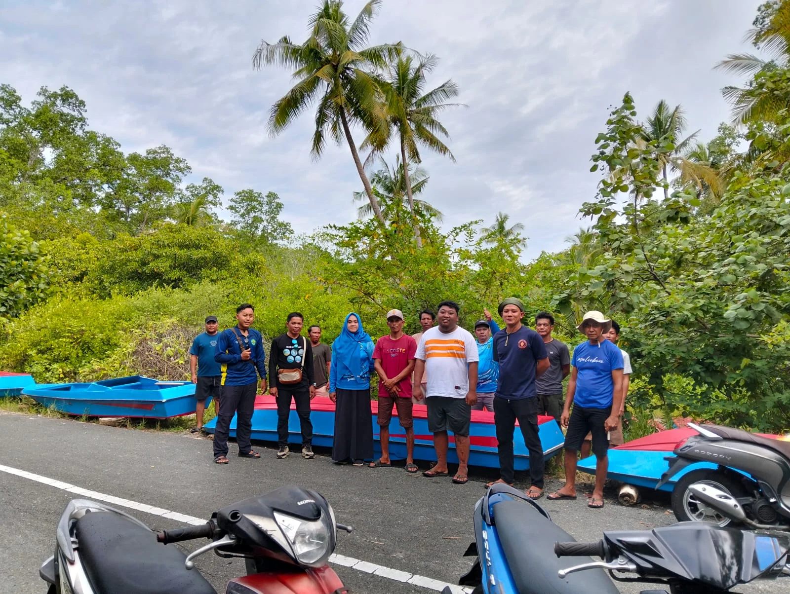 Waris juga membawa aksi nyata dengan menyerahkan bantuan berupa 10 unit kapal fiber kepada Kelompok Nelayan Kakap Merah.