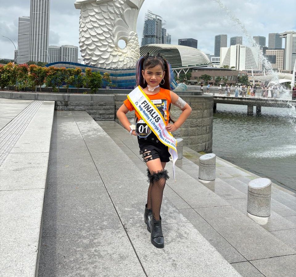 Model cilik berbakat ini sukses mencuri perhatian dalam ajang bergengsi bertajuk “Indonesia’s Modern Bridal Fashion Show Case Mega Wedding & Lifestyle” yang digelar di Singapore Expo, Jumat (9/1/2026).