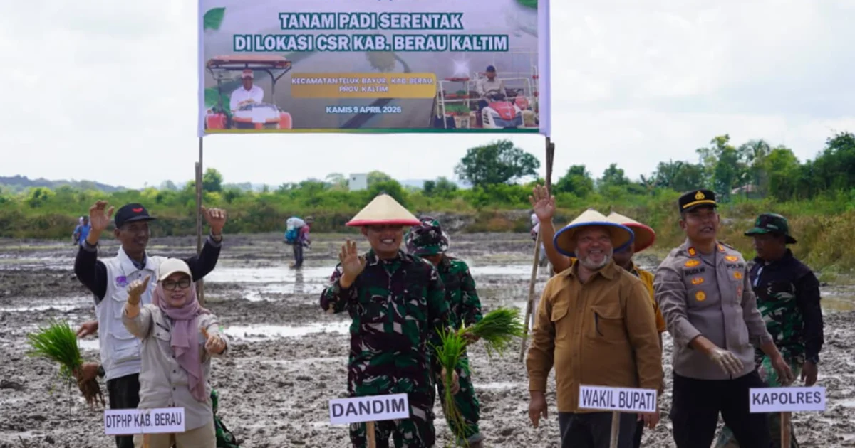 Upaya memperkuat ketahanan pangan terus ditunjukkan Pemkab Berau melalui Gerakan Tanam Padi Serentak di lokasi CSR (Cetak Sawah Rakyat) Kampung Labanan Jaya, Kecamatan Teluk Bayur, Kamis (9/4/2026).